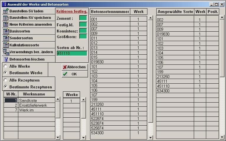 können Sie alle Rezepturen des Entwurfes in die Auswahltabelle übernehmen, die