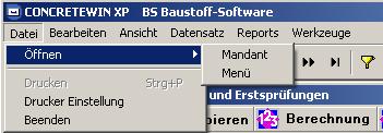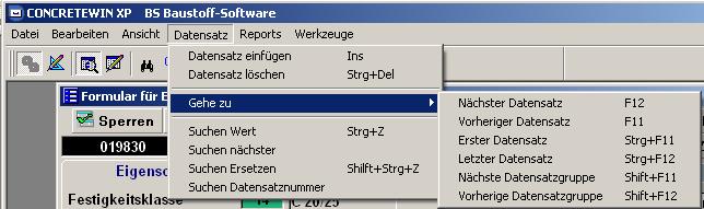 Wie man von Formular schnell in ein Parameterformular gelangt : Der Benutzer wird anhand eines Menüformulars durch das Programm geführt. Manchmal ist es aber gewünscht, direkt in ein anderes Formular zu wechseln und etwas nachzuschauen. Dazu kann durch Anklicken der Feldbeschreibung vor einem grünen Feld (Nachschlagefeld) direkt in das entsprechende Formular gewechselt werden. (Bespiel : Menü Betontechnik --> 1 Betonprüfung --> Kundennummer angeklickt --> Adressdatenbank Schalter :