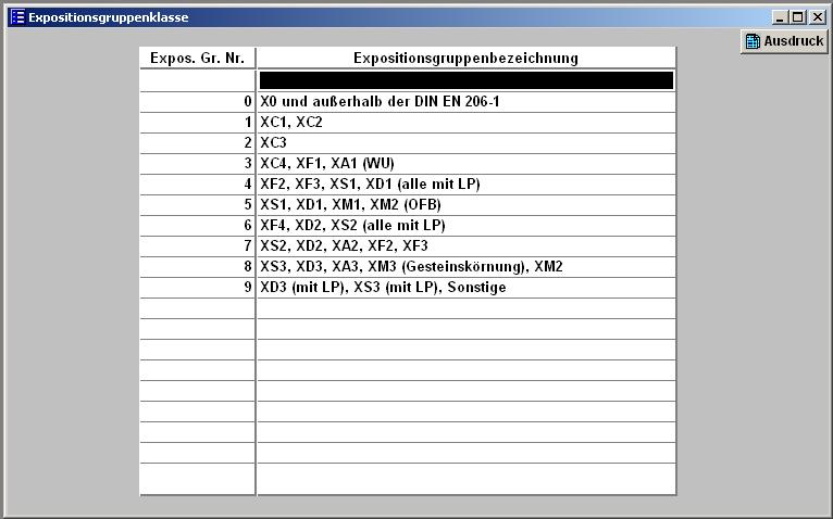 Hier wurde entsprechend dem BTB Vorschlag die Expositionsklassengruppen hinterlegt.