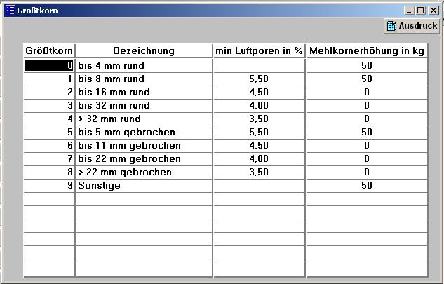 Das Größtkorn dient im Entwurf der Betonrezepturen als Info. Sie geben dort nur die Größtkornnummer ein. Die beiden Felder min. Luftporen in % und Mehlkornerhöhung sind wichtig für eine spätere Prüfung der Betonrezeptur auf Plausibilität.
