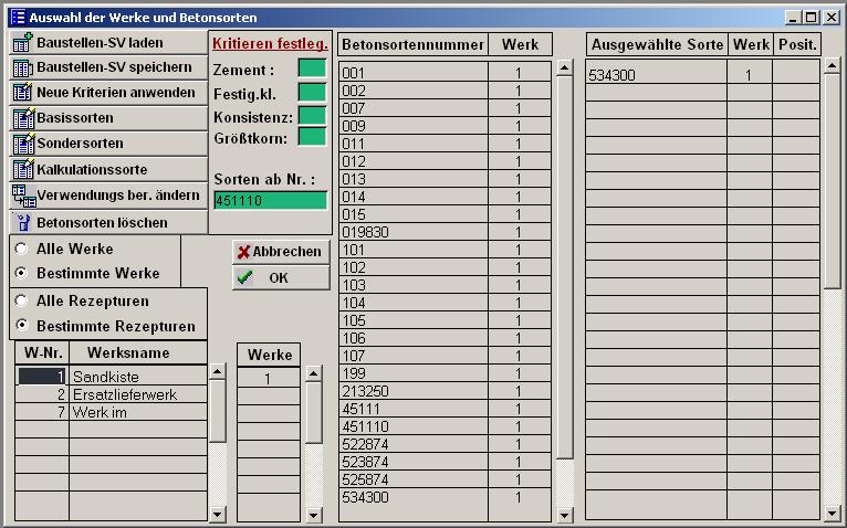 können Sie alle Rezepturen des Entwurfes in die Auswahltabelle übernehmen, die