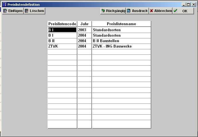 Im Vertriebsmodul können Preislisten nach dem Jahr und dem Vertriebsgebiet hinterlegt werden. An dieser Stelle werden zuerst die übergeordneten Preislisten definiert. |